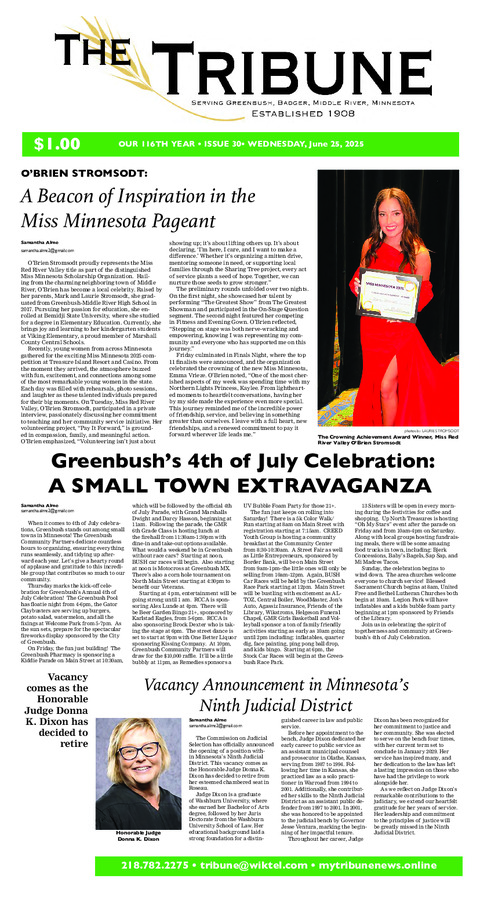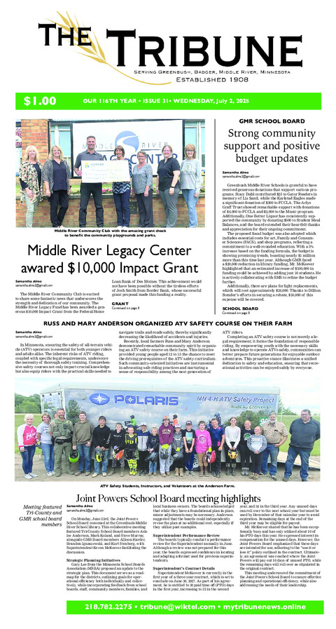 Looking Back From the past issues of the Greenbush Tribune, Middle...