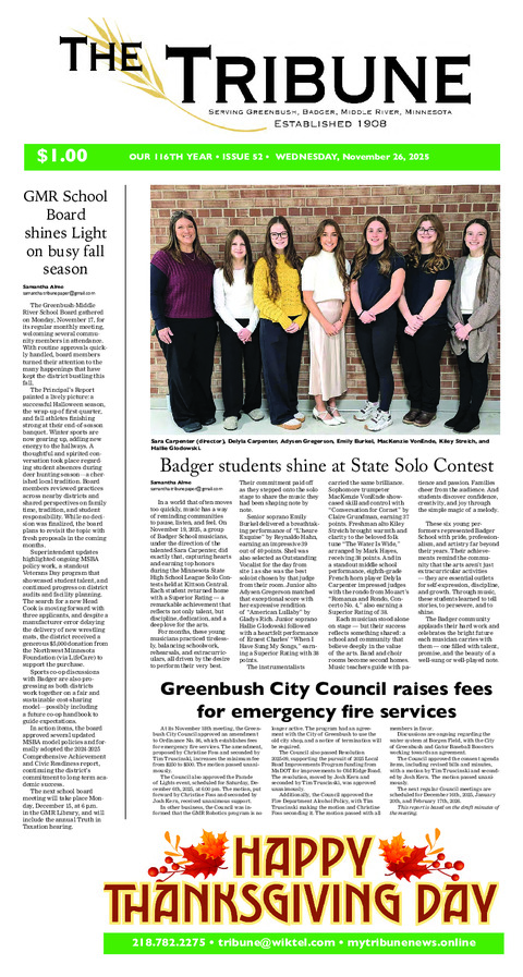 At its November 18th meeting, the Greenbush City Council approved an amendment to Ordinance No. 86, which establishes fees for emergency fire services. The amendment,...