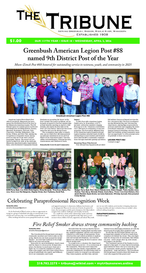 American Legion Moen-Zimek Post #88 of Greenbush, Minnesota has been named the 9th District Post...